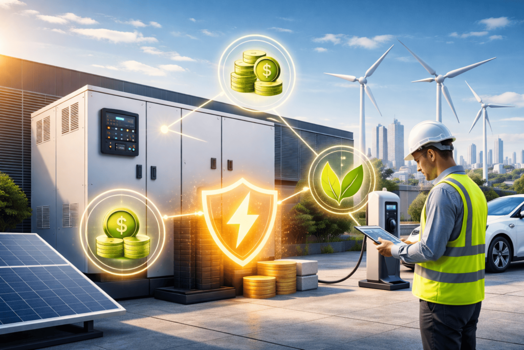 Energijos kainų svyravimai, tinklo apkrovos ir tvarumo reikalavimai daro energijos kaupimą strategiškai svarbia investicija. Įmonės, kurios investuoja į energijos kaupimo sistemas, gauna: